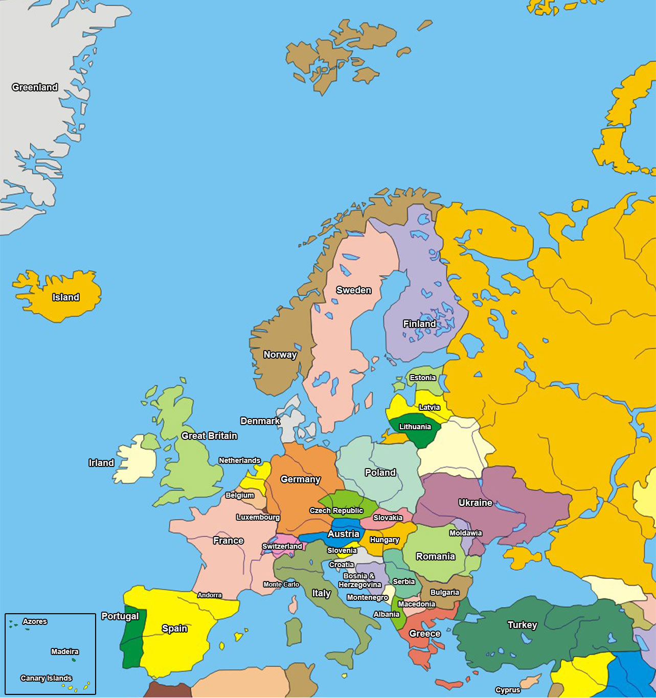 Monte Carlo Azores Azores Cyprus Turkey Bulgaria Macedonia Serbia Montenegro Bosnia & Herzegovina Ukraine Moldawia Romania Hungary Germany Poland Czech Republic Lithuania Latvia Estonia Luxembourg Netherlands Belgium Belgium Great Britain Great Britain Great Britain Sweden Irland Irland Greenland Spain Canary Islands Portugal Greece Denmark Azores Azores Spain Canary Islands Austria Greece Greece Albania Croatia Slovenia Slovakia Spain Spain Portugal France France Switzerland Italy Italy Germany Norway Norway Finland Denmark Brasil